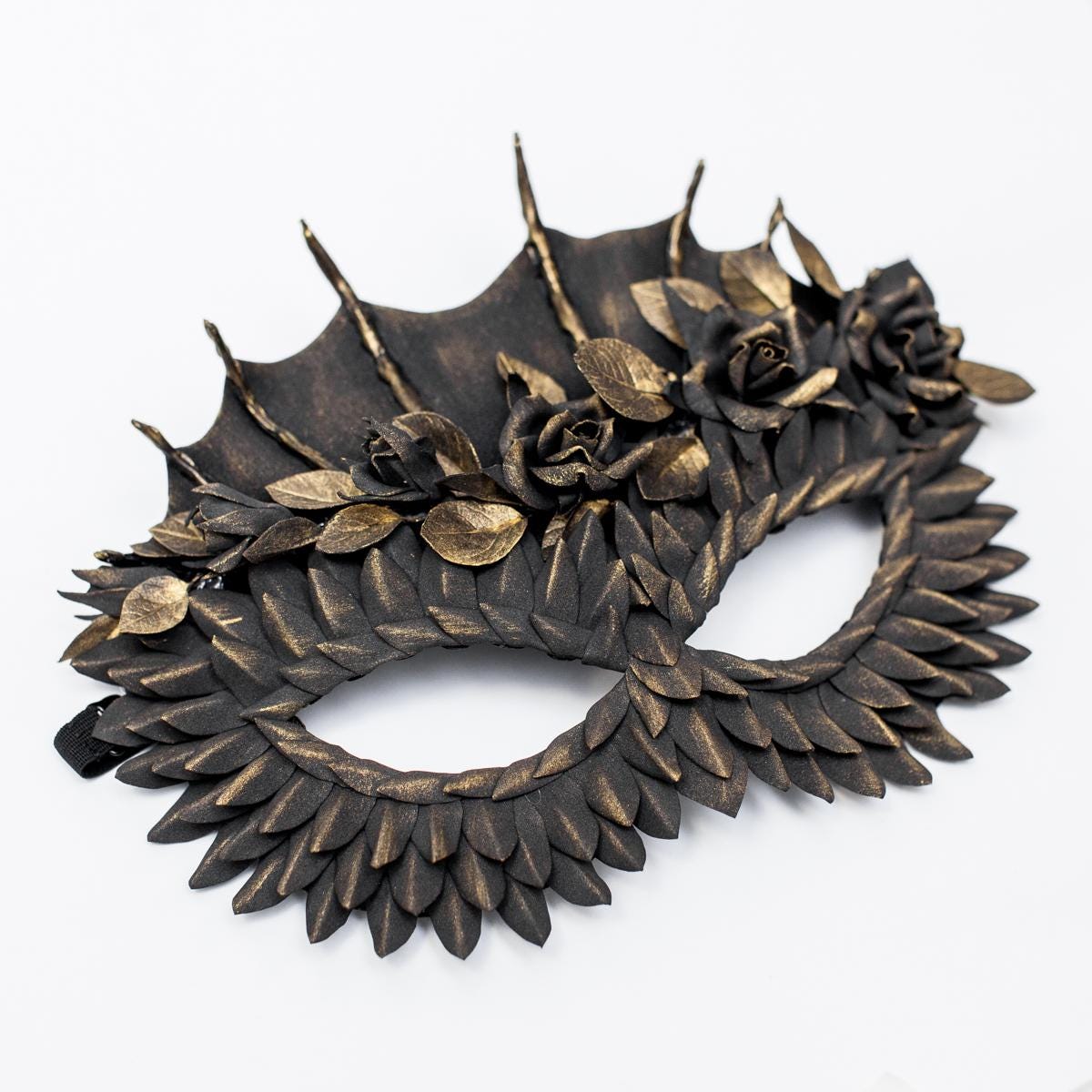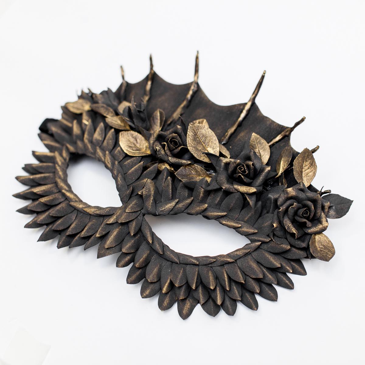Маскарадная маска «Черно-золотой дракон» – фантазийная маска ручной работы из пены EVA с розами и чешуей