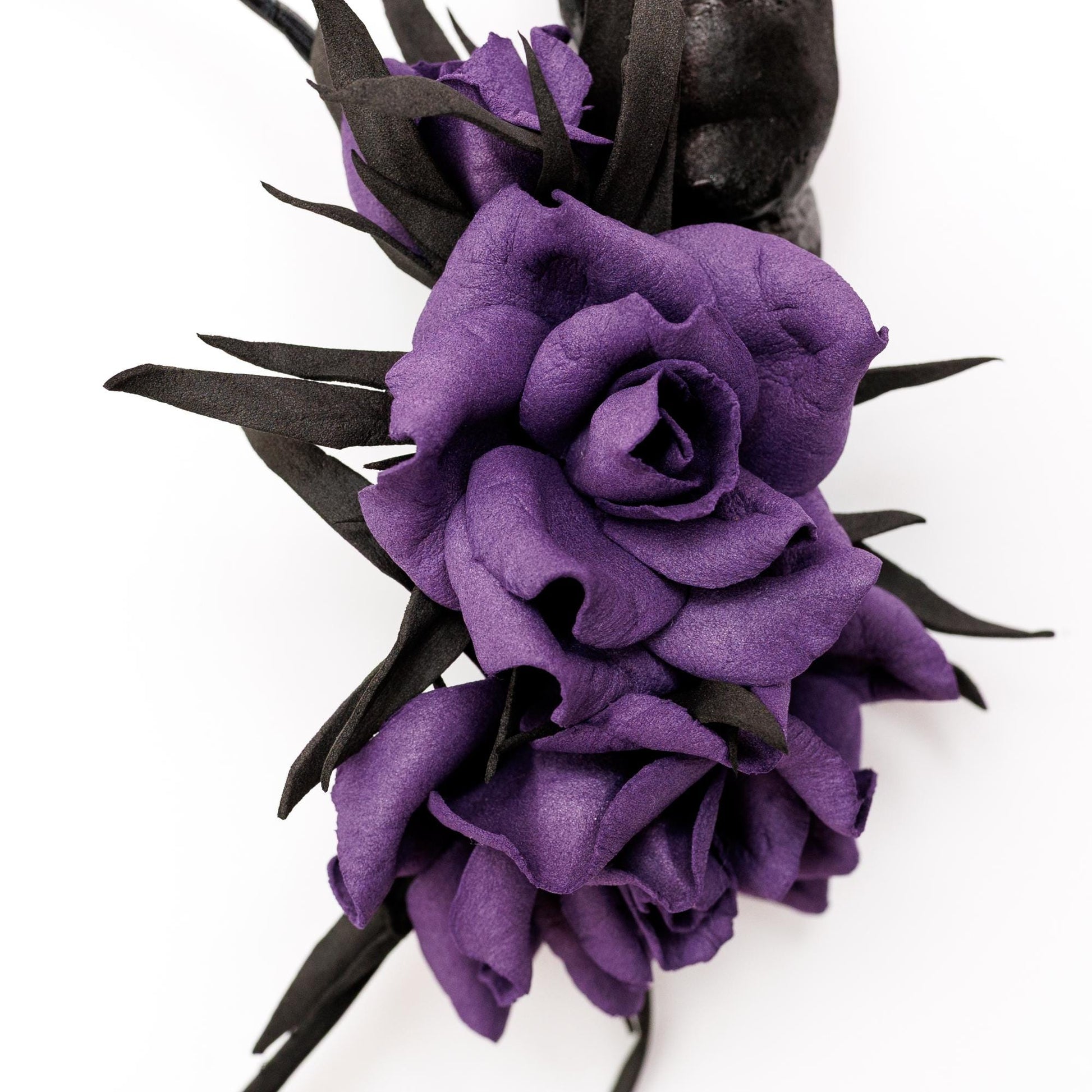 This black demon horns headband, decorated with the queen of flowers-purple rose, meaning deep strength and power.