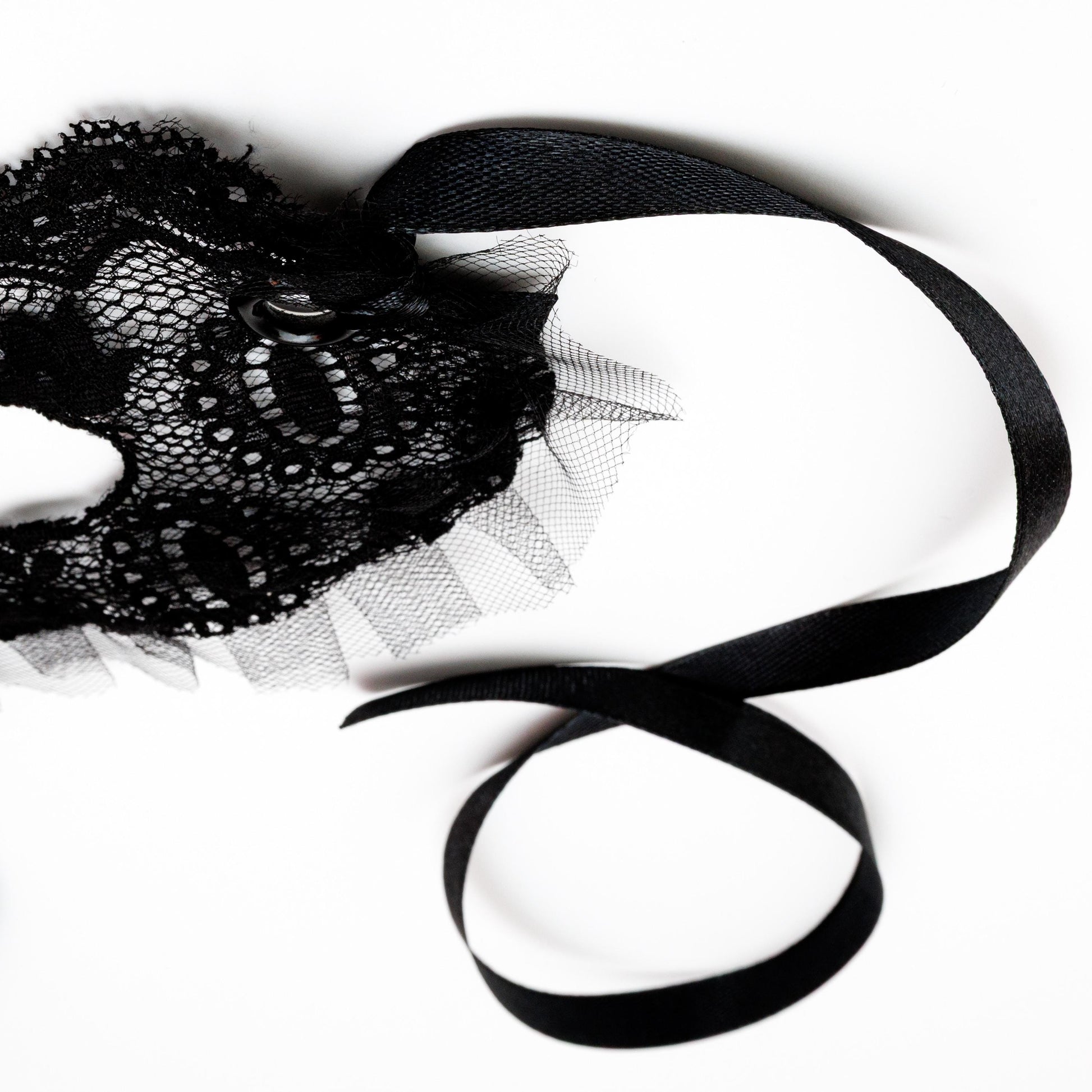 Add a touch of mystery and elegance with this handmade black lace masquerade mask.