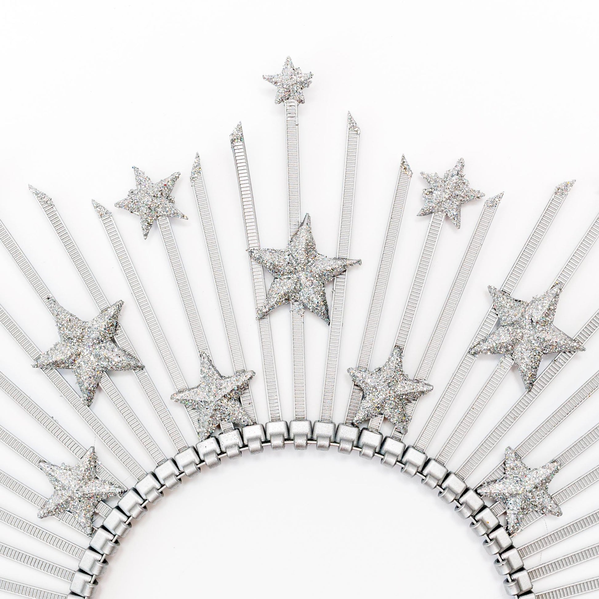 Silver Star Crown Headpiece: Glitter Halo Tiara, Celestial Cosplay